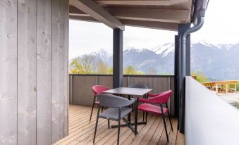 Fronhausen 2 km from Mieming: Large, modern apartment block "Alpine Boutique Apartments", 3 storeys, built in 2023. 9 apartments in the residence. 3 km from the lake, 5 km from the skiing area, on a main road. For shared use: lawn for sunbathing. Pergola. In the house: reception, central heating system, washing machine, tumble dryer (for shared use). Storeroom available. Parking at the house, communal covered parking. Dimension: height 210 cm. Supermarket 800 m, restaurant 1 km, bakery 800 m, café 1 km, bus stop "Fronhausen" 100 m, railway station "Mötz" 6 km, outdoor swimming pool 500 m, bathing lake "Mieming" 3 km. Golf course (27 hole) 3 km, riding stable 1 km, walking paths from the house 200 m, skisport facilities 5 km, ski rental 5 km, ski school 5 km, cross country ski track 7 km, children's playground 500 m. Nearby attractions: Area 47 20 km, Innsbruck - Goldenes Dachl 45 km. Well-known ski regions can easily be reached: Seefeld 23 km, Ötz - Hochötz 23 km, Zugspitzgebiet 35 km. Well-known lakes can easily be reached: Fernsteinsee 19 km. Hiking paths: Mieminger Plateau 1 km. Please note: baby equipment (included). Animals in the neighbourhood. Additional accommodations can be booked. There is a coffee (capsules) and drinks machine in the reception. Sun loungers are available for the communal lawn and pergola. Skis and bicycles can be stored in the underground car park. Small ski area "Grünberglift" in 5 km. "be home", 3-room maisonette 93 m2 on 2nd floor. Modern and stylish furnishings: entrance hall. Luggage room. Large kitchen-/living room (oven, dishwasher, 4 ceramic glass hob hotplates, toaster, kettle, electric coffee machine, Capsules for coffee machine (Nespresso) extra, cooking island) with 1 double sofabed (1 x 160 cm, length 200 cm), dining table and satellite TV (flat screen). Exit to the terrace. Sep. WC. Heating. Upper floor: with sloping ceilings, 1 double bedroom with satellite TV (flat screen). 1 double bedroom with satellite TV (flat screen). Shower, sep. WC. Parquet floors. Terrace 21 m2, south facing position and west facing position. Terrace furniture. Beautiful view of the mountains. Facilities: hair dryer. Internet (WiFi). Garage (1 car), height 210 cm. Please note: non-smokers only. Smoke alarm. Underground parking for 1 car only - 1 additional car can be parked outside!