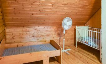 15 km east of Mikkeli, Pond Pieni-Huhtilampi 20 m (length 500 m, width 150 m), soft, deep sanded mud bottom, own boat. Log building 1997, living room/ kitchen, washroom, sauna, terrace, veranda, upstairs (sloping ceilings, more than 1.6 m high floor area is about 20 m²) bedroom with double bed, alcove with 2 beds (through it to bedroom, folding door between). WiFi. Upstairs sleeping area with air conditioning to cool the sleeping area.
