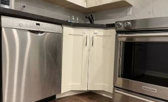 What landmarks are close to Modern bsmt apmt | King & sofa bed | Free parking?