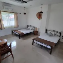 Good hotel. Away from all the parties. Clean, everything is there, they clean. Breakfasts are mediocre, every day the same: 1 banana, two toasts, two spoons of jelly, soup, a couple of pieces of papaya. It is advisable to live with a bike. There is a cooler with hot water in the room. There is hot water. The room is spacious, the Daikin air conditioner cools at 5. The overall impression is 4 with a plus because of the breakfast.