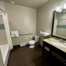 The room was spacious, comfortable and clean. With regards to the staff, they were helpful and provided what I needed. The only issue I had was that adjusting the temperature of the water in the shower was troublesome, it was either too hot or too cold.