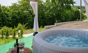 Single-family house "Cosy Home D&D", 3 storeys, renovated in 2025. 1.5 km from the centre of Brod Moravice, in a sunny, elevated position, 70 km from the sea, in the countryside. Private: property 1'600 m2 with lawn and trees, swimming pool (above ground) round (depth 120 cm, seasonal availability: 01.Jun. and 15.Sep.). Barbecue. In the house: internet access, hot tub (extra). Infrared sauna, spa area (extra), central heating system. Parking (for 3 cars) at the house on the premises. Shop 1.6 km, supermarket 26 km, restaurant 20 km, bus stop 3 km. Nearby attractions: NP Risnjak 40 km, Zeleni vir 16 km, Kamačnik 20 km. Please note: suitable for families. Part of the house is closed and unoccupied. It is necessary to announce the heating of the hot tub in advance. 4-room house 150 m2 on 3 levels. Living/dining room with open-hearth fireplace, cable TV and air conditioning. Exit to the terrace. Open kitchen (oven, dishwasher, 4 induction hot plates, toaster, kettle, freezer, electric coffee machine). Shower/WC. Upper floor: entrance hall with air conditioning. 2 rooms, each room with 1 french bed (160 cm, length 200 cm), cable TV. Exit to the balcony. 1 room, without wardrobe with 2 beds (90 cm, length 200 cm), cable TV. Shower/WC. Floor heating, forced-air heating. Balcony 7 m2, terrace 80 m2 partly roofed. Terrace furniture, balcony furniture. View of the countryside and the forest. Facilities: safe, hair dryer, logs (free). Internet (WiFi, free). Please note: suitable for families. Non-smoking house. Maximum 2 pets/ dogs allowed.