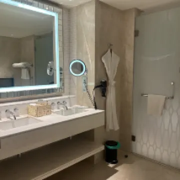 Stayed for 3 nights.Awesome experience! Reception was welcoming and the rooms were big (particularly as it is right outside the arrival area of T1 terminal). Ample potable water provided for a family of 4. Pitch dark functions were enabled for the curtains and the rooms were sound proof. Breakfast spread was adequate, and live counters were fabulous. Would love to have a few more options for fruits.