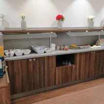 It was great that there was a kettle. Instant coffee and tea were also freely available. The refrigerator worked. Everything was great. Breakfast buffet on offer.