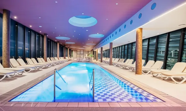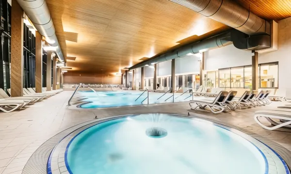 The pool complex features white and black thermal water which has unique therapeutic properties. Guests can choose from a recreational indoor pool, whirlpools, an outdoor Olympic swimming pool, nature pool, kids pool as well as indoor swimming pool complex only for adults.