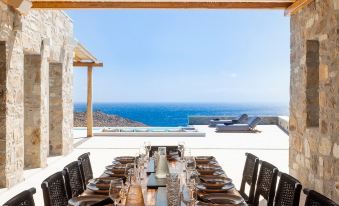 My wife and I spent two nights here as a finale to our vacation in the Greek Islands. It was an amazing ending. The staff were terrific top to bottom, and we thought the service from the front desk, dining, beach, housekeeping, and spa teams was courteous, warm, and attentive. We were given a really generous room upgrade at check-in, and loved the view from our private deck (even if we spent as much time at the beach as possible). Throughout the stay, staff were really helpful with keeping us comfortable and fed. We also appreciated the assistance with arranging transfer from the Old Port, to our flight, and in/out of the main town. Photos don't really do justice to how beautiful the resort's location is or how large and comfortable the villas are. Located at the southern tip of Mykonos, the hotel offers a peaceful and family-friendly oasis from the hubbub at Hora or the busier beach clubs. Even in August, you could totally forget it's high season but for the dozens of yachts passing by each day. The resort enjoys its own private beach, which is WAY less crowded than some of the others we saw traveling around the island. It also has great cover from the north and west winds. The property has fewer than a dozen villas so competition for beach chairs is pretty much nonexistent. Well worth it for family vacation or couples' getaway.