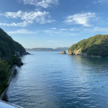 The hotel is built in the mountains and needs to go through a 100-meter-long tunnel to get there. After getting off at Katsuura Station, walk for 1.4 kilometers, or take a taxi, as I remember, it costs more than 700 yen. The hotel's lobby, rooms and hot springs all face the bay, which is very pleasant. The staff was very enthusiastic and provided the timetable for the Kumano Kodo bus and the Ji の Matsushima Cruise. The breakfast is Japanese style and very rich. Although it does not have the sunrise scenery of Urashima Hotel, it is cheap and good.