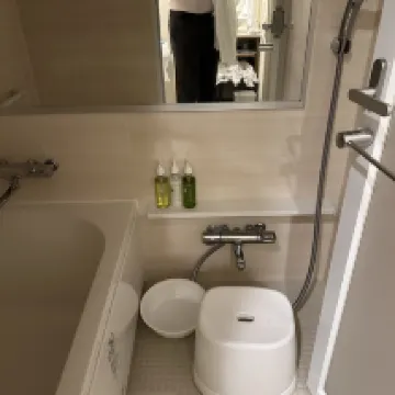 The room was clean. Two adults and two children stayed in a twin room; we pushed the beds together to create a very large sleeping area. The bathroom was convenient for showering, offering both a bathtub and a separate, quite spacious shower, almost like those found in a public bathhouse.
