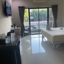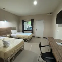The location is good. There are shops, a rice shop, a mini Big C in front of the hotel. It is a spacious hotel with many buildings and zones. There is a parking garage for each building. It is convenient and private. The rooms are spacious, clean, and the service is very good.