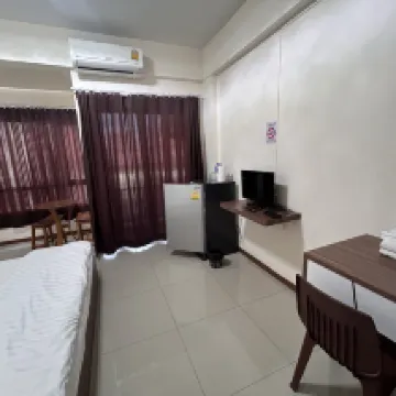 The accommodation is next to Wat Phailom and near Phra Pathom Chedi. Overall, it is okay to stay, not very spacious, similar to a dormitory. I stayed during my graduation ceremony. There is a lot of parking space, but the towels are not very clean and have stains. There is no hair dryer and there is a 300 baht key deposit. The receptionist is not very professional.