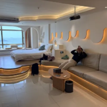 Loved the location, away from Qing’Ao which is way too touristy. Staff were so helpful especially with scooter hire and even gave us a gift upon our check out. Room was massive at 77sqm and the view was really nice especially at sunset and sunrise. A lot of great seafood restaurants around and of course, convenient stores and scooter hires. Would love to come again especially with such a beautifully laid out space with projector!