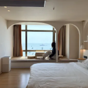 Right by the sea with a fantastic view. I was a bit worried it might be noisy at night being by the road, but it was actually very quiet. It's also super close to the tourist center bus stop, making it convenient to get everywhere. The lady at the front desk was very helpful; she even helped resolve some noise I heard before bed. Plus, I got a little gift when checking out! 🎁