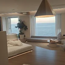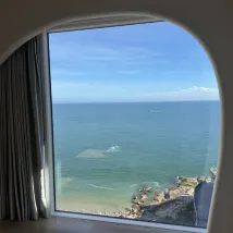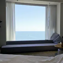 The room was spotlessly clean, and the expansive floor-to-ceiling windows offered breathtaking ocean views – absolutely stunning! I absolutely loved the decor. The surrounding area offers excellent amenities, making it incredibly convenient for both dining out and ordering delivery.