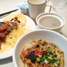 The room is very clean and the design is very user-friendly. There are wireless chargers on the bedside table and desk; the toilet automatically heats and flushes; the night light automatically lights up when the master switch is turned off, and the switch is simple and clear, unlike some hotels that have to try five, six, seven or eight times to turn off the light; the pillow is slow to rebound, and the height, softness and hardness are just right; the softness and weight of the quilt are also moderate, and the quilt cover will not feel slippery and cold; there are porridge and steamed snacks to eat at night, which are warm and warm. The overall is very comfortable. Even if I am on a business trip, I would choose this place first, which is much better than the Ximouton where the central air conditioning was filled with second-hand smoke at the previous stop. I didn't take many photos of the room, so I attached a picture of "late night porridge".