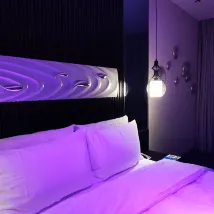 Very good, comfortable mattress, large room, good view. Drinks in the refrigerator are drinkable, takeaways are delivered to your door by a cute robot. Type of trip: Going home to visit relatives.