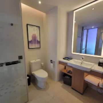 I took my mother and I on a self-guided tour. Compared with the Hampton by Hilton in Changsha Wuyi Square, Guiyang, and Fuzhou, this is the hotel where I felt the least serviced. The air conditioning in the lobby was insufficient, there was no standard fragrance, the chairs were dirty, and the front desk staff did not smile when checking in. Because I had just come from Changsha, the Hampton Hotel there upgraded the room because it was off-season, so this time I asked if I could arrange it by the river. The answer was that the superior room we booked could only have a round view, and the deluxe room could only have a river view. This is understandable, but I felt that they were making excuses when they added that the river view room would be noisy if it was close to the road. If the front desk staff did not have the authority to upgrade, I could understand it, but this also precisely reflects that the hotel management is not good. There are not many people in the off-season, and the good reviews can be improved through service. Then there is no toilet seat, no reminder of where to eat breakfast, there are mosquitoes at night, and the mosquito repellent is useless. At 9:30 in the morning, they started to remind us that they were going to collect the food, and asked us to take more food. It felt a bit like rushing people. In general, there is no service, and they are trying to save costs everywhere. Compared with the one in Changsha May Day Square, it feels like falling from heaven. I don't recommend staying here. It takes 9 yuan to take a taxi from the subway station.