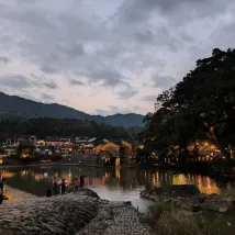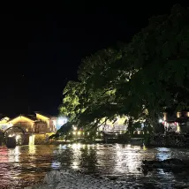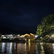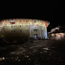 It's very convenient in the scenic area. After dinner, I took a walk to see the night view of the Tulou. It's very quiet. When the weather is good, I buy a cup of milk tea or coffee. It's also nice to think about life by the river. The boss is very good. I just unpacked a large and a small suitcase and left.