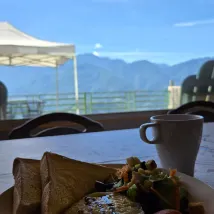 The last night of my 4-day, 3-night solo trip, I experienced staying in a glamping tent. It was surprisingly spacious for just one person. The starry sky at night was absolutely breathtaking. The afternoon showers gave way to a magnificent rainbow stretching across the valley right before my eyes, which brought even more joy. I hope to return with friends next time so we can enjoy a barbecue together. For this peaceful solo getaway, I opted for the guesthouse's casual dinner, and it was surprisingly hearty and delicious!