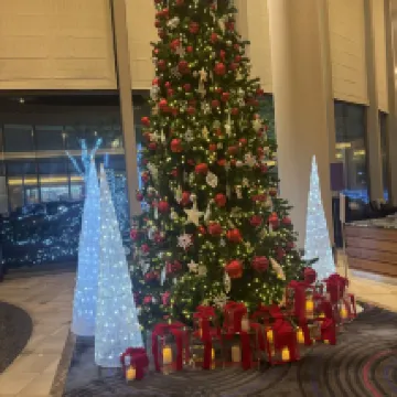 Relaxing spacious room. Main entrance area nice Christmas decor. Breakfast was good with a mix of western and Japanese options. Meet Hilton name. DiDi 2700¥ to hotel. Need to know hotel provide airport transfers pick up outside T3 bus stop (turn right)