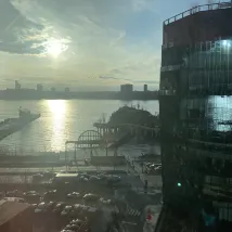 The design is great and the view of the Hudson River from the floor-to-ceiling windows is quite good.