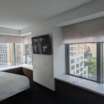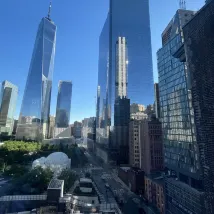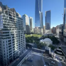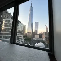 The room offered a lovely view of the One World Trade Center, and its location is conveniently close to subway stations. However, the room could benefit from some updates, as it seemed a bit old and outdated.