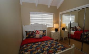 This ocean front home is perfect for your next family vacation! With shutters in the living room keeping the sun out on especially hot afternoons or keep them open completely to reveal breathtaking ocean and Catalina views, this home is cozy and bright to lounge in after a long day on the beach. A flat screen TV in the living area is great for movie nights after a refreshing day at the beach.