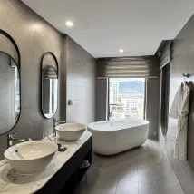 Wonderful néw hotel in the busy center of Nha Trang, the room was clean and spacious. Love the bath tube settings and don't miss their swimming pool ! Breakfast is also amazing too !
