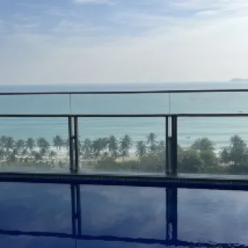 Nice hotel, good breakfasts. We have a room with a window and a sea view, but the windows are dirty, which is a bit frustrating. It takes 7-10 minutes to walk to the sea. Quietly. There is a pool on the 16th floor with a great view, but with dirty railings, which slightly spoils the view.