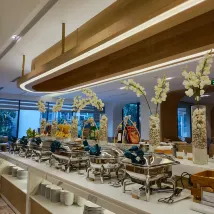 The breakfast buffet was decent and edible, but a variety of menu options would be helpful.