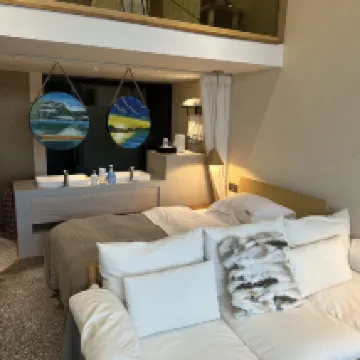 We stayed two nights at Lake Water Skyline. The hotel is in a convenient location with easy access to nice restaurants nearby. We walked around the lake. Our room is nicely decorated and comfortable. The room has everything we needed. We had the loft room and our room faces the lake. It was peaceful and quiet and we could see the seagulls flying around the lake. The room has smart technology. The staff were very friendly and warm towards us. Breakfast was delicious too. Will stay here again if we have the chance.