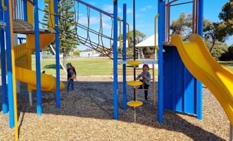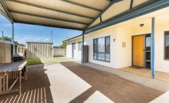 There is a secure fenced area for children to play in if you are not at the beach and a barbecue for outdoor cooking. Undercover parking for one, but more cars can park on the generous street verges.