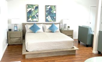 Our Vacation Rental Studio is a 1 bedroom 1 bathroom studio which sleeps 4. One California King Bed with a 3'' memory foam topper & One Queen Pull Out sofa Bed with a 3'' memory foam available if requested.