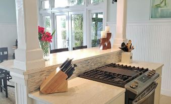 Awake with the sun illuminating the waves below, as you step outside to the poolside terrace to have a morning swim in the infinity pool. Then walk through the spacious Great Room to the Gourmet Kitchen, where you can prepare your island style cuisine on quartz countertops and new stainless appliances. If more casual fare is in order, fire up the new built in stainless outdoor Monogram gas grill adjoining the kitchen.
