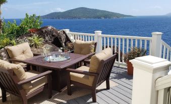 Fully renovated in 2019, Ocean's Edge Villa - St. Thomas - is a Caribbean paradise located in the gated community of Sydney's Fancy. Built on a peninsula, the 370 feet of waterfront featuring a spectacular ocean view, which includes more than ten islands and cays stretching down the famous Drake's Passage. Trade-winds make the villa virtually mosquito free. Enjoy immaculate four bedrooms, all with en suite bathrooms. Full size pullout couch in the office and a twin rollaway is also available. Sleeps up to 10. Situated on the exclusive Peterborg peninsula, you and your family will feel safe in this gated community with a security system. Only, a 4 Minute drive to the world famous Megan's Bay Beach.