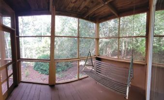 We are way out in the country. Our entrance is on pine needles with overhanging trees. The property is on 8 acres of forested waterfront. It has a private 150 foot pier and a library with over 2000 books. At night, be sure to try out the 1000m Meade telescope. Far from the city lights, you can see the Milky Way.