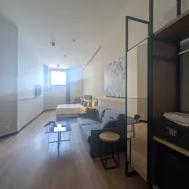 It was huge, with a sofa, an arm chair, small desk and chair, cupboard with shelves and hangers. Bathroom was good size too. Looked new. Window was big and high so couldn't open. We had no noise disturbing us so was quiet.But AC was great. We had breakfast in their cafe below and was good. Choice of a few items with orange juice and coffee. Location of Kombinat rooms was awesome. Just a minute into the church square in old town.