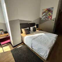 We are traveling to EXIT festival. Great location, city centre is around the corner. Big and clean rooms. Hotel has few car parking space and if you traveling by car just ask for parking lot at reception. It cost €9 per day. Petrovardin fortress is in 15 walk across the bridge