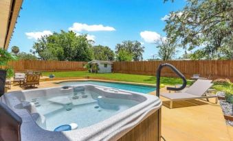 Yes, Backyard Oasis w/ pool & hot tub has a pool.Does Backyard Oasis w/ pool & hot tub have a swimming pool?