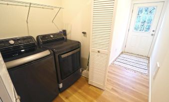 The spacious master bedroom with a queen bed has a double sink en-suite bathroom, walk-in closet and direct access to the back patio. The second bedroom with it's own queen bed can double as a designated work space with a desk and hi-speed Wi-Fi. Easily cook in the fully stocked kitchen including a toaster oven, Ninja blender, crock pot, hand mixer, immersion blender, and all new appliances. To help start your morning right there is a kettle, pour over coffee set, and a classic Keurig. Enjoy a cozy fire in the backyard or coffee in the morning on the covered front porch, where you might see a deer or two!