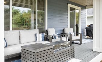 Step outside to your private outdoor oasis, where you can relax, unwind, and watch the sunset. Enjoy al fresco dining on the spacious patio, complete with comfortable seating and a gas grill for your barbecuing pleasure. The outdoor space also features a fire table, ideal for cozy evenings under the stars, and a hot tub where you can soak away your cares.