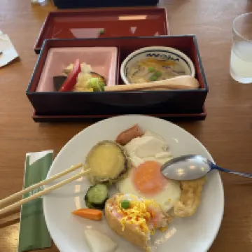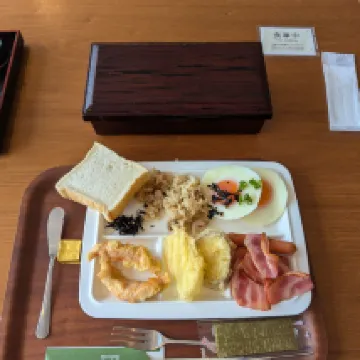 Extremely convenient for getting around and shopping, with a shopping street, many izakayas, and karaoke right across the road. The rooftop onsen is absolutely fantastic, offering distant views of Beppu Bay. There's also a cafe run by an old gentleman in the shopping street, and their breakfast is delicious 😋