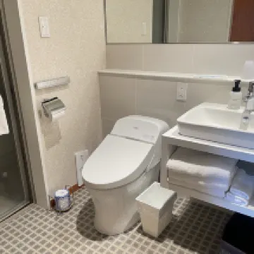 The room was fantastic! Our triple room on the 17th floor offered stunning mountain and water views when opening the window, creating a very tranquil setting. The rooftop boasts both open-air and indoor hot springs ♨️, available for unlimited free use with your room key card. The water temperature was perfect, and soaking in the springs, sipping tea, and watching the sunset was pure bliss! The buffet breakfast was quite generous. The room was notably spacious, especially for Japan. Complimentary amenities such as toothbrushes, combs, and cotton pads are available for pick-up at the front desk. Rooms receive a light daily service (replacing amenities, emptying trash, but not changing linens), with a full cleaning every two days. Complimentary bottled water is provided, and the bathroom includes a bathtub 🛁. The front desk staff provided excellent, warm, and attentive service – Japanese hospitality is truly outstanding 👍.