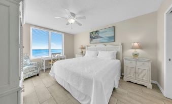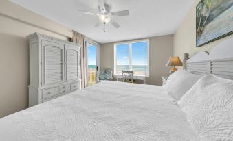 Escape to your perfect beachfront oasis! This newly updated 2-bedroom, 2-bath condo accommodates up to six guests and offers breathtaking beach views from the master suite and living area. Enjoy stunning sunsets and complimentary beach service.