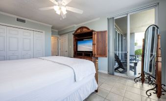 The all-white kitchen provides ample space for cooking up the catch of the day or for snacking during the day. Since this ground-floor condo has easy access to the beach, snacking is an easy feat!