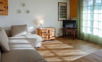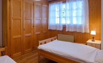 Chalet "Le Mont Blanc", 2 storeys. 1.6 km from the centre of Villars, in a quiet, sunny position, 500 m from the skiing area, located by a road, in the countryside, south facing position. In the house: storage room for skis, central heating system, washing machine (for shared use, extra). In Winter: please take snow chains. Public parking. Shop 1.6 km, grocery 800 m, restaurant 1 km, bus stop 800 m, railway station "Villars" 1.9 km, thermal baths "Lavey-les-Bains" 19 km. Sports harbour 25 km, golf course (18 hole) 7 km, indoor tennis centre 2 km, sports centre 2 km, mountain railway 1.9 km, gondola lift, ski bus stop 400 m, ski school 1.8 km, children's ski school 2 km, ice rink 1.5 km, children's playground 1 km. Please note: no lift. Free ski bus service to the ski region Villars. "Le Mont Blanc 8", 2-room apartment 45 m2 on 1st floor, south facing position. Simple and practical furnishings: living/sleeping room with 1 double sofabed (140 cm, length 200 cm), open-hearth fireplace, dining table and TV (flat screen). Exit to the balcony. 1 room with 2 beds. Small kitchen (4 hot plates, oven, dishwasher, kettle, raclette grill, fondue Set (cheese)). Bath/bidet/WC. Balcony 10 m2, south facing position. Beautiful view of the mountains and the countryside. Facilities: hair dryer. Internet (WiFi, free). Please note: fridge without freezer. Maximum 1 pet/ dog allowed.