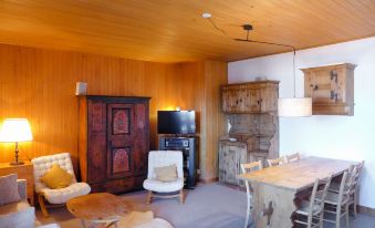 Villars-Sur-Ollon: Chalet "Les Montagnards", 3 storeys. In the centre of Villars, 500 m from the skiing area, south-east facing position. In the complex: storage room for skis, central heating system, washing machine (extra), tumble dryer (for shared use, extra). Parking (limited number of spaces). Shop 400 m, grocery 150 m, café, 3 minute walk to the centre, bus stop, railway station 900 m, indoor swimming pool 900 m, thermal baths "Lavey-les-bains" 20 km. Sports harbour 25 km, golf course (18 hole) 7 km, mountain railway 700 m, gondola lift 400 m, slopes, ski bus stop 900 m, children's playground 1 km. Please note: no lift. Free ski bus service to the ski region Villars. "Montagnards 17", 4-room apartment 80 m2 on 3rd floor, south-east facing position. Practical furnishings: living/dining room with dining table and TV (flat screen), DVD. Exit to the balcony, east facing position. 1 room with 2 beds (90 cm, length 200 cm). 1 room with 2 beds (90 cm, length 200 cm). 1 double bedroom, without wardrobe with 1 french bed (2 x 90 cm). Small kitchen (oven, dishwasher, 4 ceramic glass hob hotplates, toaster, kettle, microwave, freezer, electric coffee machine, Capsules for coffee machine (Nespresso), raclette grill, fondue Set (cheese)). Bath/WC. Balcony, east facing position. Beautiful view. Facilities: washing machine, dryer, hair dryer. Internet (WiFi, free). Maximum 1 pet/ dog allowed.