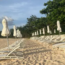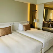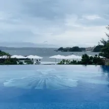 A five-star resort hotel with three pools (infinity, large, and children's) and a small splash pool. Staff provide towels and bottled water at the poolside loungers, with paid food options available. The private beach is a 10-minute walk to the loungers. Rooms are clean, comfortable, and great for staying in all day. It's recommended to stay at least two days to fully enjoy the hotel's atmosphere and amenities. You can still use the amenities even after you check out tho which is nice.