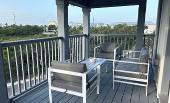 Beautiful new custom built home completed in July 2023 with a short walk to deeded beach access, large community pool and state park trail access. Cross walk to deeded beach access is just steps away. This home sleeps 8 comfortably with 3 full bedrooms, each with a connected bathroom. There is also an office with a twin bed. Relax on the balcony with views of the pond and a partial view of the Gulf of Mexico.About pets:Pets allowed: dogs and cats less than 20 lbs per pet (limit 2 pets total).About checkOut:Check out before 10:00 AM.About children:Children allowed: ages 0-17.About customRules:No trailers can be parked overnight on the property..About checkIn:Check in after 4:00 PM.About smoking:Smoking is not permitted.About minBookingAge:Minimum age to rent: 25.About events:No events allowed.