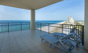 Outside, your expansive private balcony features stunning panoramic Gulf views as far as Gulf State Park. As a corner unit, you have the absolute best views of the sunset, so relax on a chaise lounge or dine al fresco at the outdoor table and revel in the beauty of Orange Beach.