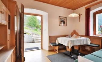 2-family house "Mastle". 700 m from the centre of St. Ulrich/Ortisei, 6 km from the centre of S. Cristina Valgardena, 37 km from the centre of Bolzano, in a sunny position on a slope. For shared use: property, well-kept garden with lawn. In the house: storage room for bicycles, storage room for skis. Parking on the premises. Shop 900 m, restaurant 50 m, bus stop "Ortisei" 700 m, railway station "Bolzano" 36 km, indoor swimming pool 2 km. Golf course (18 hole) 16 km, mountain railway 1.4 km, ski lift 1.4 km, gondola lift 1.7 km, ski bus stop 50 m. Well-known ski regions can easily be reached: Seceda, Seiser Alm. Please note: the owner lives in the same residence. "Mastle", 2-room apartment 42 m2, on the ground floor. Cosy and wooden furniture furnishings: living/dining room with dining nook and TV. 1 double bedroom. Small kitchen (mini-oven, 2 induction hot plates, toaster, kettle, electric coffee machine). Shower/WC. Gas heating. Parquet floors. Patio. Deck chairs. Facilities: baby cot. Internet (WiFi, free). Please note: non-smokers only. 1 small pet/ dog allowed. Private entrance, fire extinguisher. IT021061B45O6ZYBYU